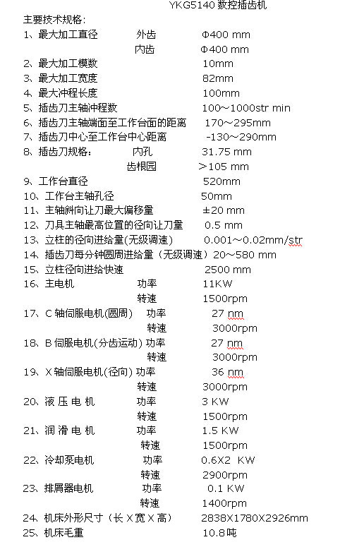 YKG5140數控插齒機